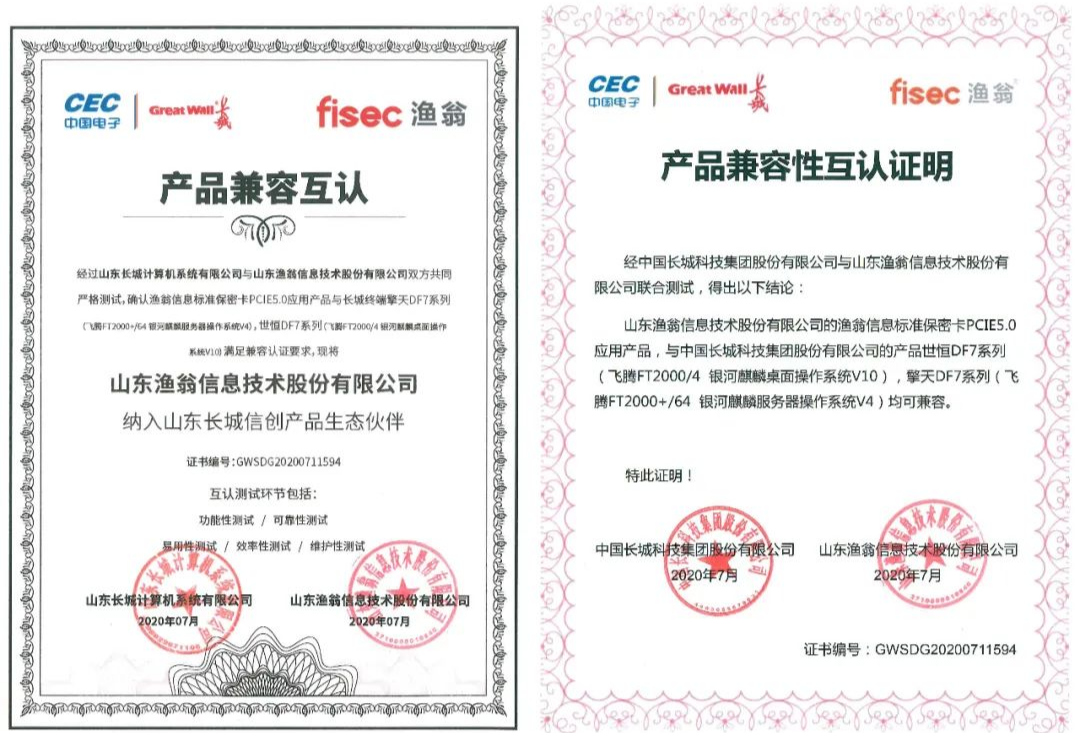 从功能性、可靠性、易用性、效率性、维护性五大环节,PA真人视讯信息与长城进行了严格的联合测试。最终确认PA真人视讯PCI-E 5.0密码卡与长城终端产品——世恒DF7系列(飞腾FT2000/4 银河麒麟桌面操作系统V10),擎天DF7系列(飞腾FT2000+/64 银河麒麟服务器操作系统V4),满足兼容认证要求。并且,PA真人视讯信息此次成为了长城信创产品生态伙伴,携手构建安全新生态。