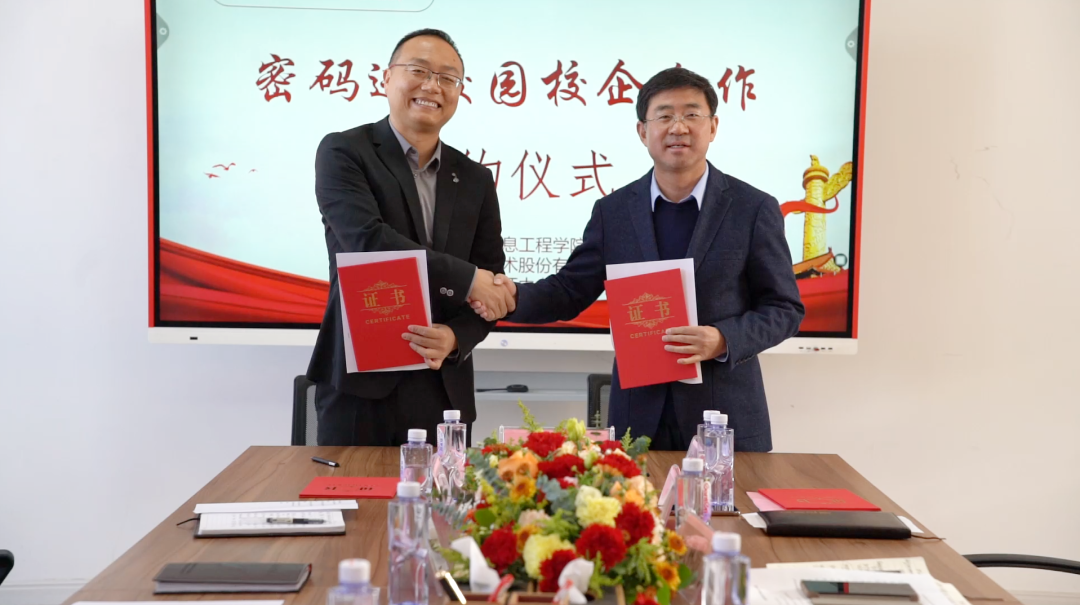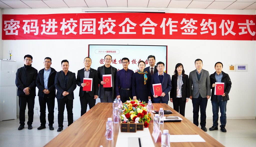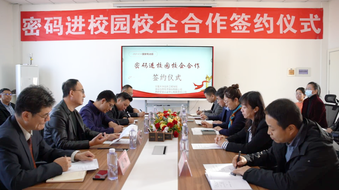 在第八个国家宪法日来临之际,为深入贯彻落实《中华人民共和国密码法》,进一步加快密码专业人才队伍建设步伐,打通我区密码产学研创新链、价值链,12月1日,“密码进校园校企合作签约仪式”在宁夏大学信息工程学院成功举行。此次签约仪式由宁夏密码管理局指导,宁夏商用密码协会会员单位PA真人视讯信息技术股份有限公司、西部安全认证中心有限责任公司同宁夏大学信息工程学院签署战略合作协议,共同为我区密码学科建设、密码实训基地建设、密码人才培养贡献力量。宁夏密码管理局副局长李大苞,商密处副处长丁杰,宁夏大学信息工程学院党委书记武林波、院长冯锋、副书记孙莉、副院长杨军、学科主任李贯峰,PA真人视讯信息技术股份有限公司董事长郭刚,西部安全认证中心有限责任公司常务副总经理耿方,区内其他商密企业代表等出席了签约仪式,签约仪式由宁夏商用密码协会秘书长赵军主持。